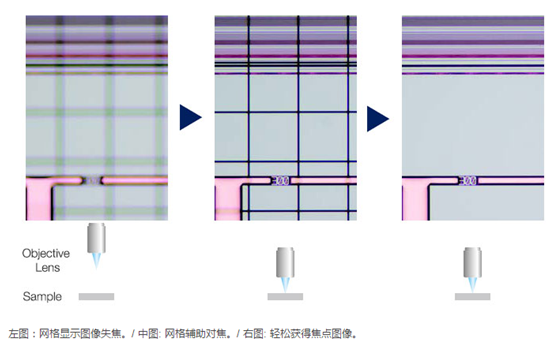 在光程內(nèi)插入聚焦輔助器可以輕松準(zhǔn)確地實(shí)現(xiàn)諸如裸晶圓之類低對(duì)比度樣品的對(duì)焦。