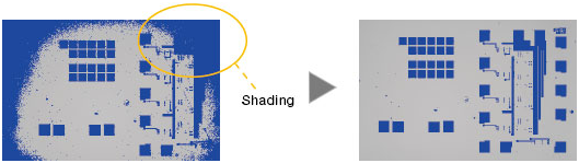 右圖: 陰影校正可在整個(gè)視場(chǎng)上獲得均勻的照明效果。