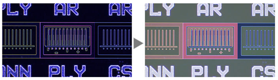 這種觀察技術(shù)非常適合諸如LCD、塑料以及玻璃材料等透明樣品。MIX照明可實(shí)現(xiàn)濾色片顏色和電路圖形的觀察。