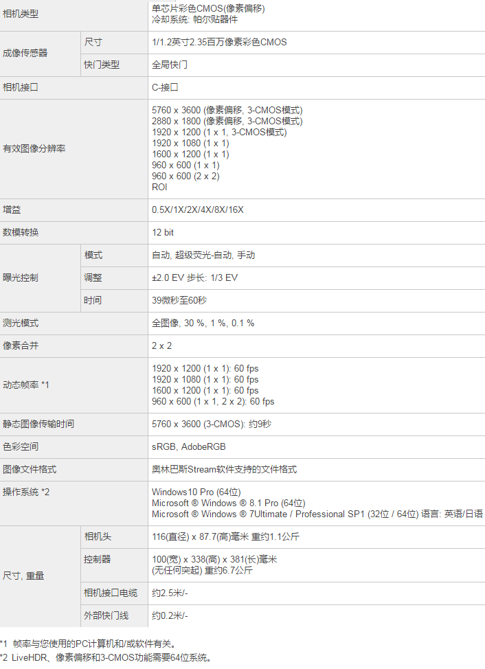 每秒60幀的寬視場、高清晰度全高清(HD)圖像。為快速圖像采集提供極大優勢。