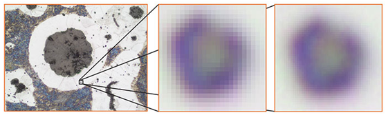 使用標準500萬像素相機,UPlanSApo 20x,1xTV-適配器所獲取圖像的細節放大使用SC180 18百萬像素相機,UPlanSApo 20x,1xTV-適配器所獲取圖像的細節放大