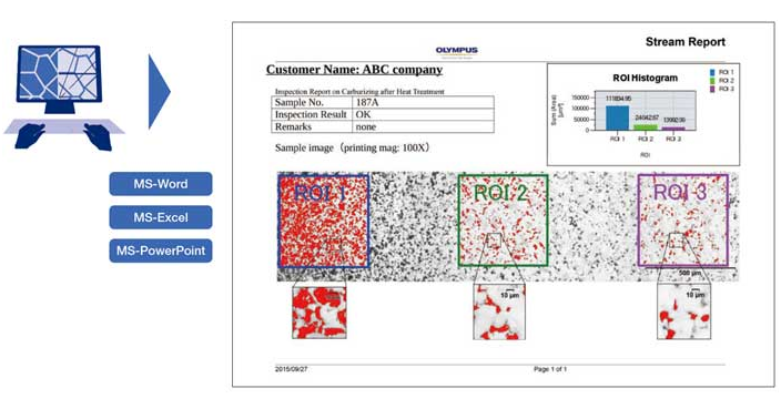 創建報告所花費的時間往往比圖像的采集和測量時間還長。利用該軟件您可根據預先設定的模板反復創建智能化的復雜報告。編輯操作簡單,且報告可導出為Microsoft Word、 Excel、或PowerPoint格式。此外,軟件的報告工具還可對所采集的圖像進行數字變焦和倍率放大。報告文件大小適中,通過電子郵件進行數據傳遞更加方便。
