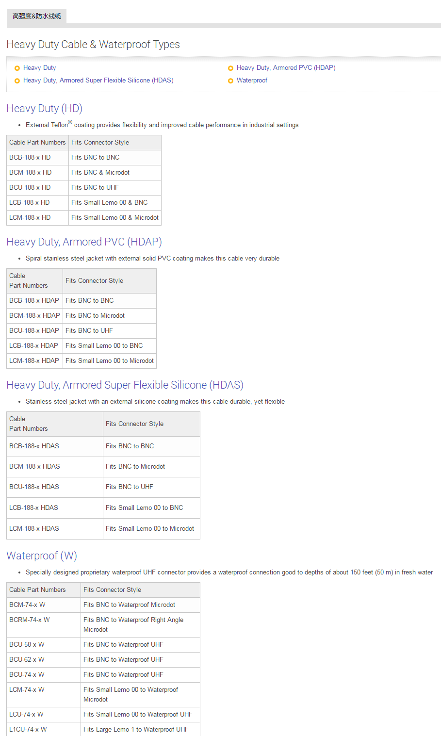 Select from a variety of cable grades to meet your specific application needs Standard lengths 3 (1 m), 4 (1.2 m), 6 (1.8 m). When ordering, replace the x in the part number with the desired cable length in feet Custom cable lengths are av