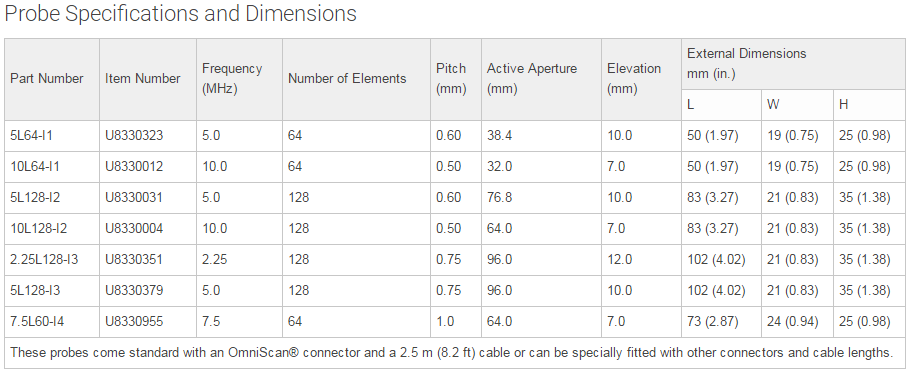 · Design allows fitting on water wedges for easier coupling on many surfaces and an adjustable water path (when the part to be inspected cannot be immersed in a tank).